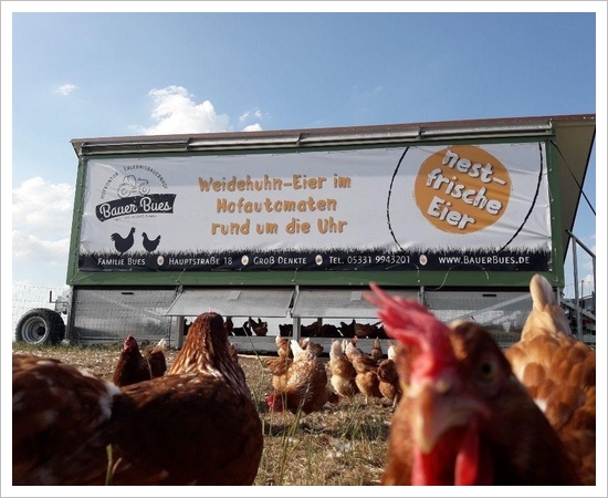 Nestfrische Eier von glücklichen Hennen aus unserem Hühnermobil und Erlebnisbauernhof zum Anfassen und Mitmachen.