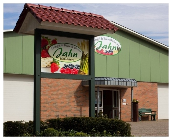 Selbsterzeugter Spargel, Grünspargel, Erdbeeren, Heidelbeeren zum Verkauf im Hofladen und selbsthergestellte Fruchtaufstriche, Schinken, Kartoffeln,