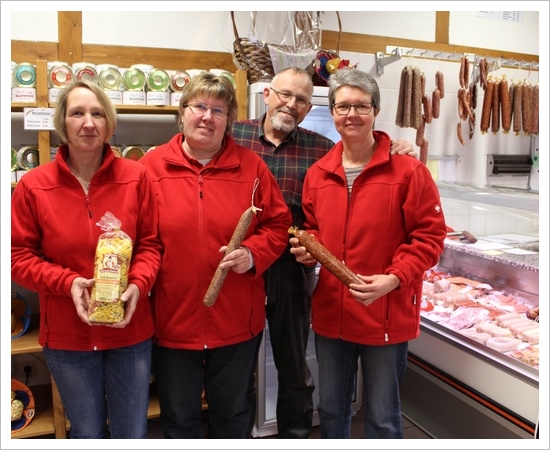 - mit alten Hausschlachte-Rezepten, die unser Fleischermeister Hannes Saudhof mit unseren Mitarbeitern in eigenen neugebauten Räumen wöchentlich frish herstellt.