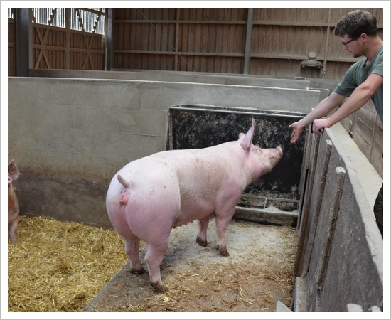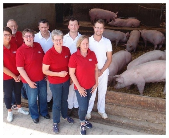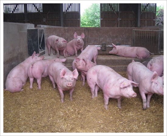 - mit ausgesuchten, schweren Schweinen, die im Strohstall leben und
