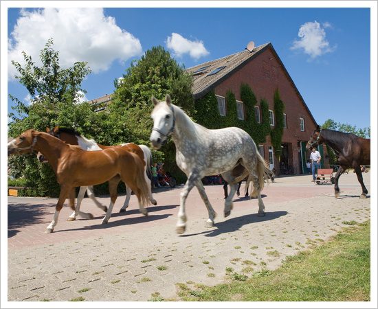 In Sichweite des Deiches zwischen den Kurorten Hooksiel und Horumersiel inmitten von Wiesen und Weiden liegt der Traberhof. Hier wird Gastfreundschaft groß geschrieben. Die modernen Wohnungen für 2-6 Personen laden zum Wohlfühlen ein. Sauna und Solarium sind im Haus. Hier schlagen die Herzen von Pferdefreunden höher oder man startet auf den Rädern in die weite friesische Landschaft oder zum Sandstrand.