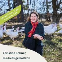 Im Rahmen der Kampagne zum Jahr der Frauen in der Landwirtschaft stellt die Landwirtschaftskammer Niedersachsen 12 Frauen vor, die für alle aktiven Frauen in der Landwirtschaft stehen. Heute im Gespräch: Christine Bremer, Bio-Geflügelhalterin aus Suhlendorf, bekannt durch die NDR-Hofgeschichten.