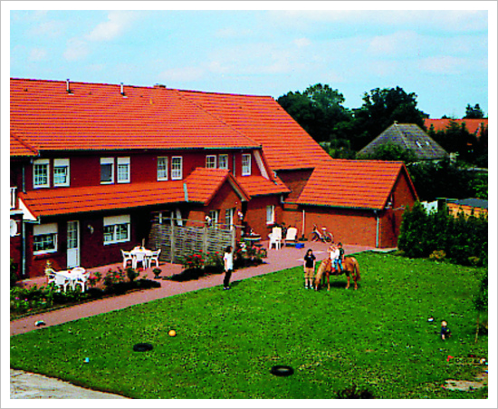 Der große Ferienhof bietet für Kinder viel Abwechslung. Eine großzügige Spielwiese, ein Spielplatz, ein See zum Baden und Angeln.