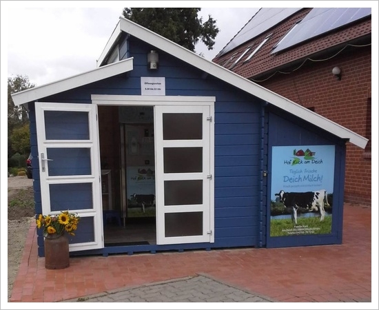 Frische Deichmilch täglich von 5.30 Uhr bis 22.00 Uhr, Eier und Kartoffeln aus der Region
