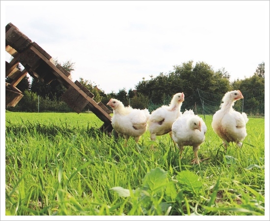 Schlachtfrische Hähnchen auf Freilandhaltung.