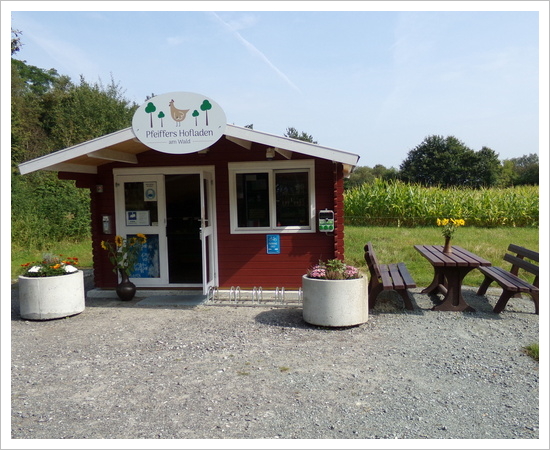 täglich geöffnet, Kaffee, kalte Getränke, Eis, Eier, Kartoffeln, saisonales Gemüse, Erdbeeren, Kürbis, Fleisch vom Highlandrind, Blumen zum selber schneiden
