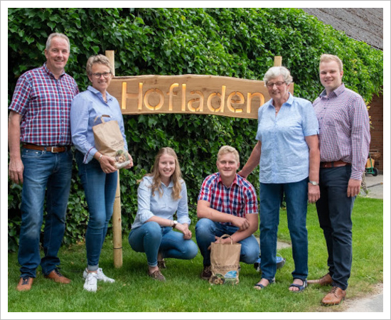 In unserem Hofladen bieten wir Kartoffeln, Eier aus Freilandhaltung,Wurst von eig. Schweinen, Zwiebeln, Honig, Äpfel, Nudeln, Käse und weitere Produkte an.