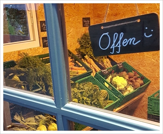 Bei uns gibt es saisonales Gemüse frisch und ungespritzt von unserm Feld. Mo, Mi & Fr backen wir Brot in der eigenen Hofbäckerei (gerne vorab bestellen).