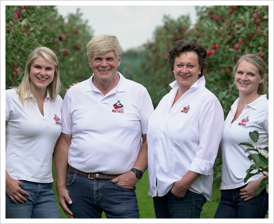 Bereits in der vierten Generation kümmern sich Wilhelm und Martina Matthies seit 1995 um ihren Grund und Boden. Auf 20 ha werden Kernobst, Steinobst und Beerenobst hergestellt. 1997 kam ein Hofladen dazu. 2001 schließlich setzte das Ehepaar die Idee des Cafés im Glashaus um.