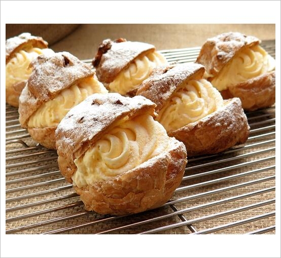 Die Creme in einen Spritzbeutel füllen und in die ausgekühlten Windbeutel spritzen.