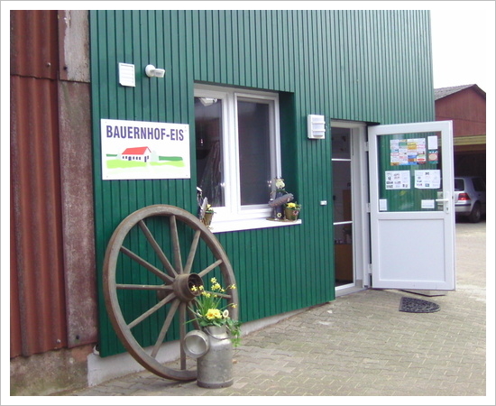 Bei uns bekommt man frische pasteurisierte Milch von unseren Kühen sowie selbstgemachtes Bauernhofeis. Dieses kann man bei uns abgepackt mit nach Hause nehmen, im Sommer gleich in der Waffel bei uns im Garten vernaschen oder als Eistorten für Feiern oder einfach mal so bestellen. Mit unseren beiden Eiswagen fahren wir auf Veranstaltungen in der Umgebung.