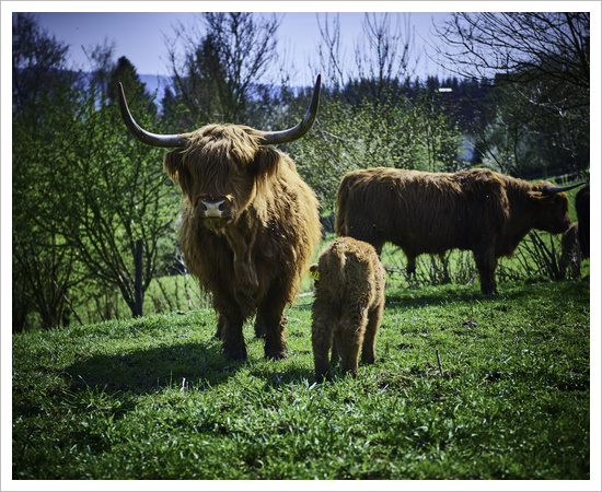 Stroit, ein Ortsteil der „Bierstadt“ Einbeck, ist eingebettet zwischen den Höhenzügen Hils und Selter mit reizvollen Mischwäldern und der Umgebung des Leineberglandes. Unsere Hofstelle liegt mitten im Ort, jedoch mit einem kurzen Weg zu den Grünlandflächen am Ortsrand. Hier leben unsere schottischen Hochlandrinder – Highland Cattle – ganzjährig auf der Weide. Jedem Tier steht ca. 1,5 ha Fläche zur Verfügung. Sie fressen während der Vegetation die natürlichen Kräuter und Gräser der naturbelassenen Flächen. Die Obstbäume auf den Weiden sind einerseits Schattenspender in den Sommermonaten, andererseits ist deren Fallobst ein besonderer Leckerbissen für die Rinder. Im Winter erhalten sie hofeigenes Heu und Grassilage, ergänzt durch Einstreu im Unterstand. Über Lecksteine erhalten sie zusätzliche Mineralstoffe. Ein Mastfutter setzen wir nicht ein. Die Tiere erfreuen sich bester Gesundheit, sind robust, agil und brauchen keine medikamentöse Unterstützung. Der Nachwuchs bleibt bis zur Absetzung bei den Muttertieren und trinkt deren Milch, so wie es die Natur vorsieht. Sie erhalten eine stressfreie Intensivbetreuung, sind an Menschen gewöhnt und handzahm.