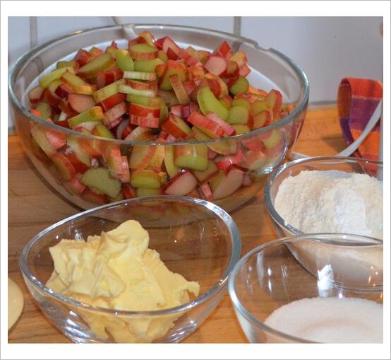 Aus Butter, Mehl, Zimt und dem restlichen Zucker Streusel herstellen, gleichmäßig über den Rhabarber verteilen und weitere 30 Min. backen.