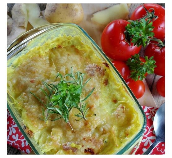 Dieser leckere Kartoffelauflauf ist etwas für die ganze Familie. Harmonisch ist in diesem Beispiel die Mischung aus Lauch und Paprika. Je nach Geschmacksvorlieben kann das Gemüse auch anders kombiniert werden. Wurde der Lauch etwas gröber geschnitten, sollte er in etwas Wasser angedünstet werden. Ideal sind festkochende Kartoffeln für diesen Auflauf, da sie sich in Scheiben schneiden lassen ohne zu zerfallen.
